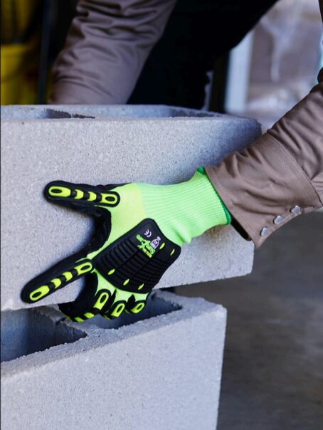 Our 13 gauge High Visibility Impact Resistant gloves are ANSI Level 5 cut rated. These gloves are reliable with long lasting protection features such as our reinforced thumb crotch guard. The Foam Nitrile Sandy grip finish allows for exceptional grip in dry, wet, and oily conditions. The sandy grip empowers surface friction for better control with less grip force reducing hand fatigue over long shifts. This palm and finger texture provides improved abrasion resistance extending the gloves lifespan. Perfect for out in the oil field or working on your car without slipping on oily or greasy tools. Price Per Pair