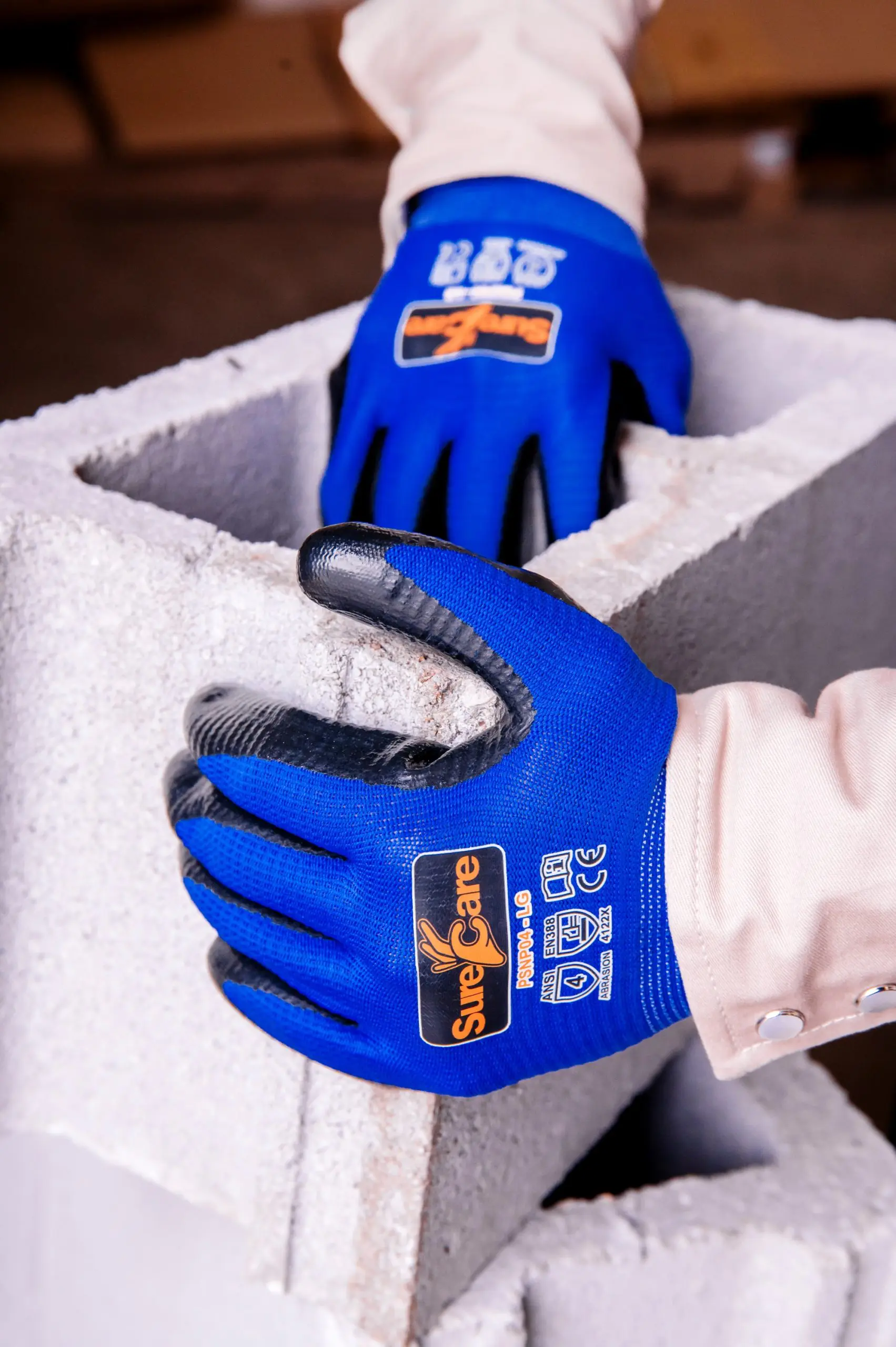 The SureCare Essential Deluxe is imperative no matter what industry you are working in due to its ability to withstand a wide range of temperatures whether it be in Automotive, Construction, Plumbing, HVAC, or Aerospace; the tacky smooth nitrile grip palm provides a durable, yet flexible barrier with outstanding grip enhancement. The versatile variety of features this 13-gauge Polyester knit liner incorporates are its lightweight breathability with conformity to a user’s hand, while still offering ultimate resistance to punctures, and provides a sure grip against lubricants, greases, chemicals, and other common liquids and or glass.